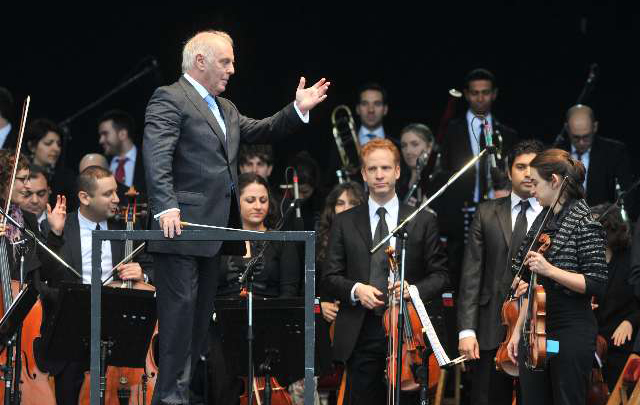El músico argentino se presentó junto a la orquesta West-Eastern Divan, integrada por jóvenes de Israel, Palestina y otros países del Medio Oriente. Destacó que lo emociona el cariño de la gente.