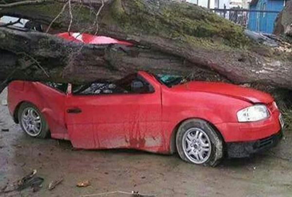 Fuertes ráfagas de viento demás de 100 kilómetros por hora provocaron voladuras de techos, caídas de árboles y corte de servicios de energía, teléfonos y televisión por cable