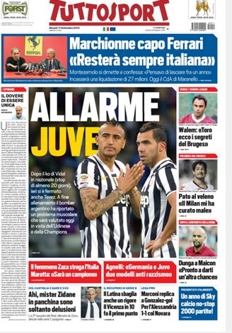 En Italia, particularmente en Juventus, preocupan las lesiones de Carlos Tevez y Arturo Vidal, dos de las figuras del campeón de la Serie A. Ambos sudamericanos no podrán estar a disposición del DT Massimiliano Allegri contra Udinese -como mínimo- y acaparan la atención de la prensa local.