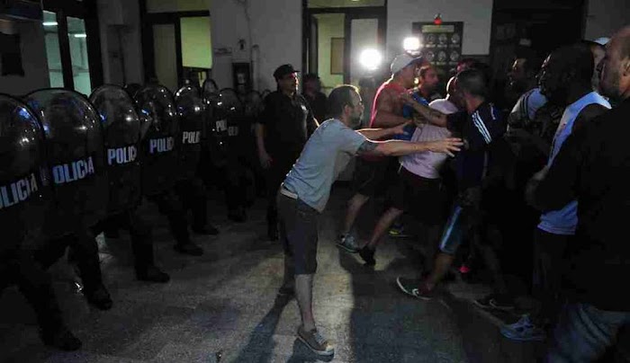 Agentes de Infantería intentaron bloquear el ingreso y se generaron incidentes. Golpes, empujones y corridas aumentaron el clima de tensión en las afueras de la comisaria.